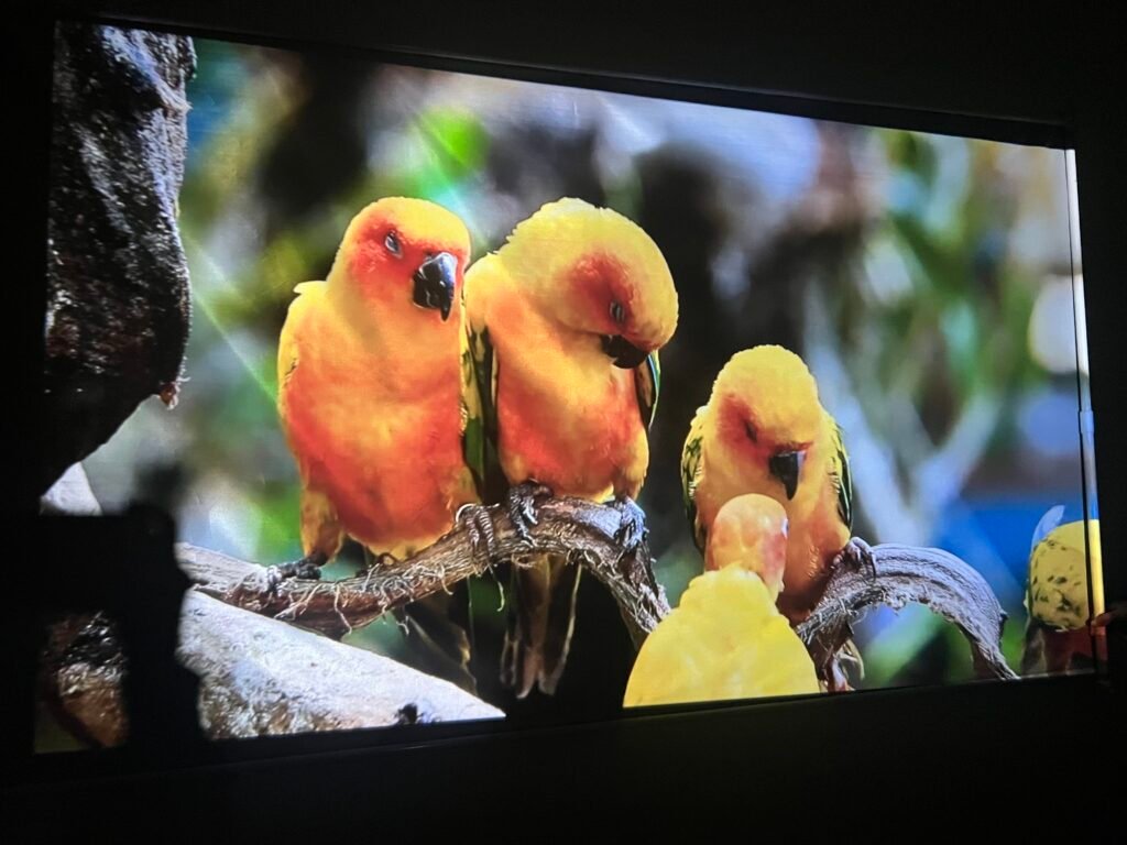 📌 Even with the lights on and the window open, movies remain visible, although the experience is slightly affected.